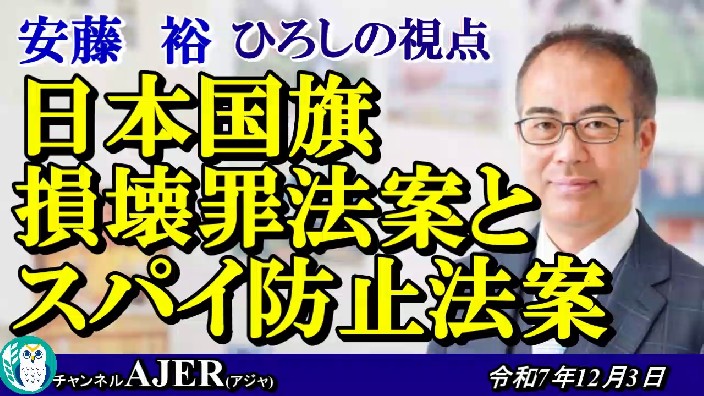 安藤裕のひろしの視点「日本国旗損壊罪法案とスパイ防止法案(前半)」安藤裕 AJER2025.12.3(4)
