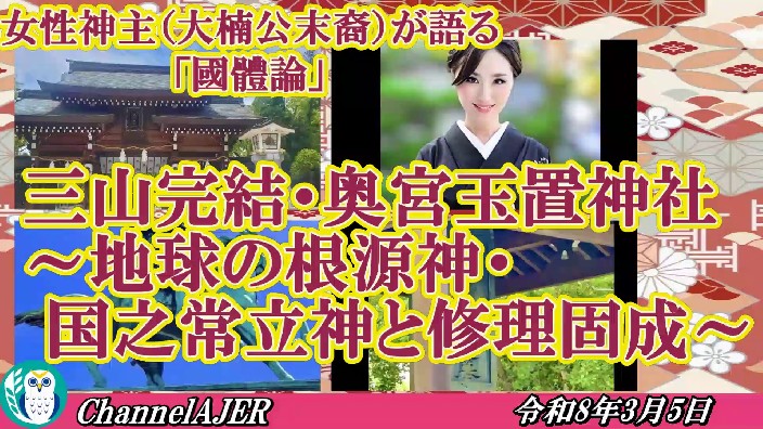 女性神主が語る國體論「三山完結・奥宮玉置神社~地球の根源神・国之常立神と修理固成~」山下弘枝 AJER2026.3.5(3)