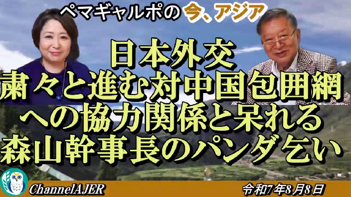 「日本外交ー粛々と進む対中国包囲網への協力関係と呆れる森山幹事長のパンダ乞い」ぺマギャルポ&古川フミエイツ AJER2025.8.9(5)