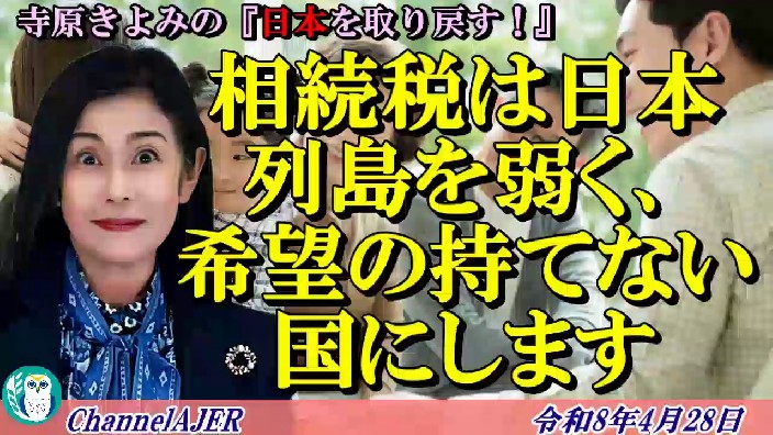 寺原きよみの『日本を取り戻す!』「相続税は日本列島を弱く、希望の持てない国にします(後半)」 AJER2026.4.28(2)