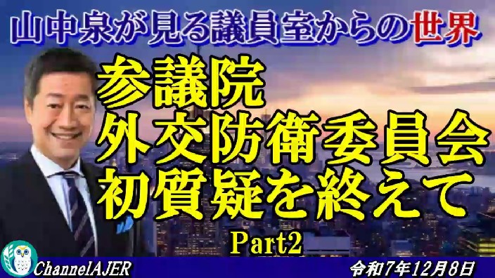 「参議院外交防衛委員会初質疑を終えて(Part2-後半)」山中 泉 AJER2025.12.8(4)