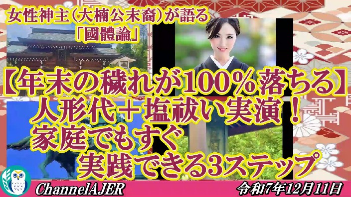 女性神主が語る國體論【年末の穢れが100%落ちる】「人形代+塩祓い実演|家庭でもすぐ実践できる3ステップ」山下弘枝 AJER2025.12.11(1)