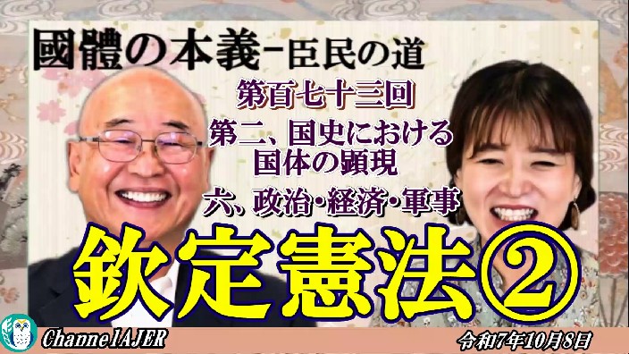 『国体の本義』第2国史における国体の顕現 6.政治・経済・軍事ー欽定憲法②」小名木善行&佐波優子AJER2025.10.1(3)