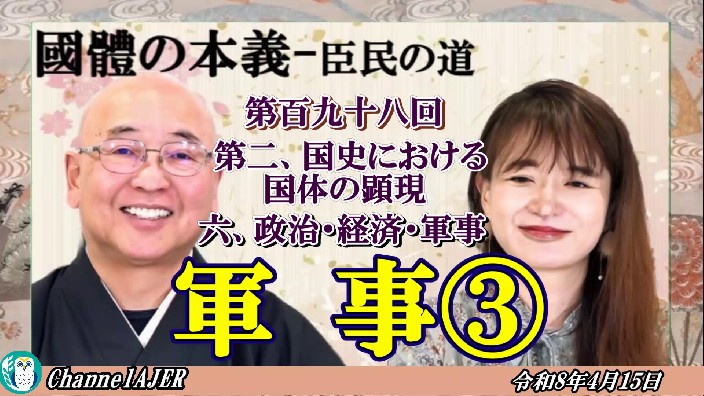 『国体の本義』第2国史における国体の顕現 6.政治・経済・軍事ー軍 事③」小名木善行&佐波優子AJER2026.4.15(3)