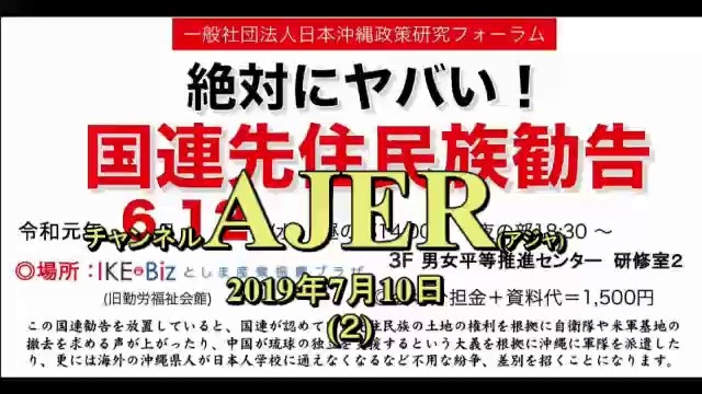 「絶対にヤバい国連先住民族勧告『絶対にヤバい国連の沖縄県人先住民族勧告』その1(前半)」仲村覚 AJER2019.7.10(2)