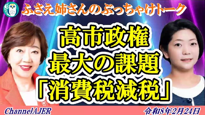 ふさえ姉さんのぶっちゃけトーク「高市政権の最大の課題『消費栄減税』」 太田房江&大沼瑞穂 AJER2026.2.24(6)