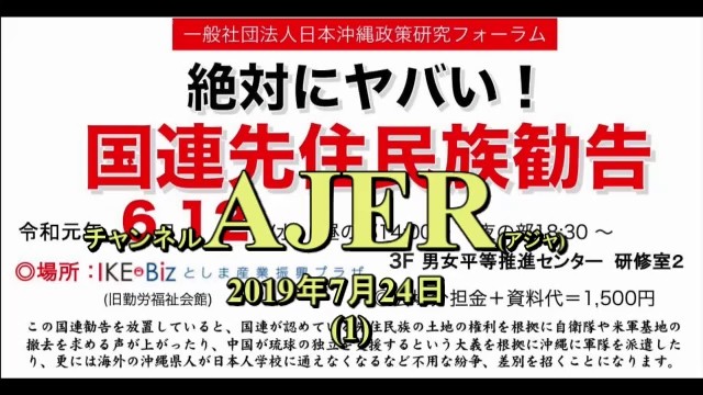 「絶対にヤバい国連先住民族勧告『絶対にヤバい国連の沖縄県人先住民族勧告』その3(前半)」仲村覚 AJER2019.7.24(1)