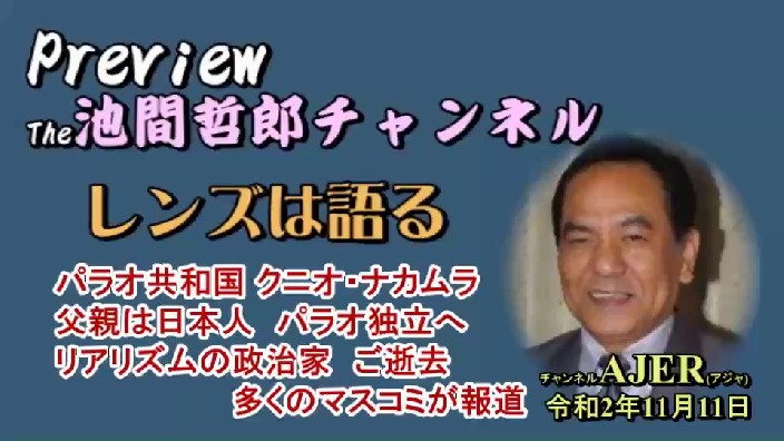 「Preview The 池間哲郎チャンネル パラオ共和国第6代大統領 クニオ・ナカムラ 父親は日本人 パラオ独立へ リアリズムの政治家 ご逝去 多くのマスコミが報道」池間哲郎 AJER2020.11.11(3)