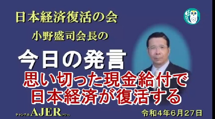 「第158回定例会第二部ー小野盛司講演会「思い切った現金給付で日本経済が復活する(1)」小野盛司 AJER2022.6.27(2)