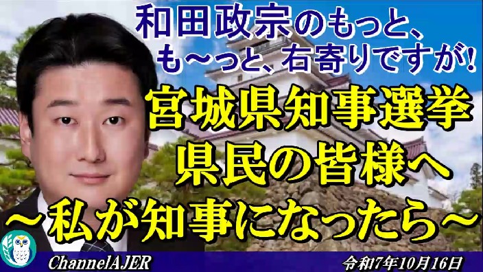 和田政宗のもっと、も~っと、右寄りですが「宮城県知事選挙 県民の皆様へ~私が知事になったら~」和田政宗 AJER2025.10.16(3)