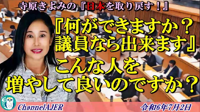 寺原きよみの『日本を取り戻す!』第52回「『何ができますか?議員なら出来ます』こんな人を増やして良いのですか?(前半)」寺原きよみ AJER2024.7.2(2)