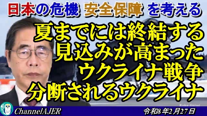 「夏までには終結する見込みが高まったウクライナ戦争ー分断されるウクライナ」矢野義昭 AJER2026.2.27(1)