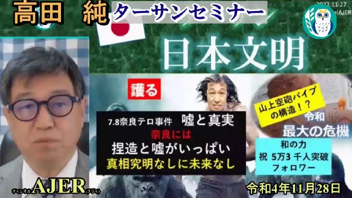 高田純ターサンセミナー「7.8奈良テロ事件嘘と真実ー奈良には捏造と嘘がいっぱい、真相究明なしに日本の未来なし」(後半)高田 純 AJER2022.11.28(6)