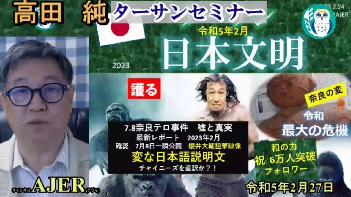 高田純ターサンセミナー「7.8奈良テロ事件 嘘と真実 櫻井大輔狙撃映像変な日本語説明文」(前半)高田 純 AJER2023.2.27(5)