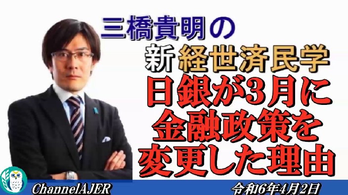 「日銀が3月に金融政策を変更した理由(後半)」三橋貴明 AJER2024.4.2(4)