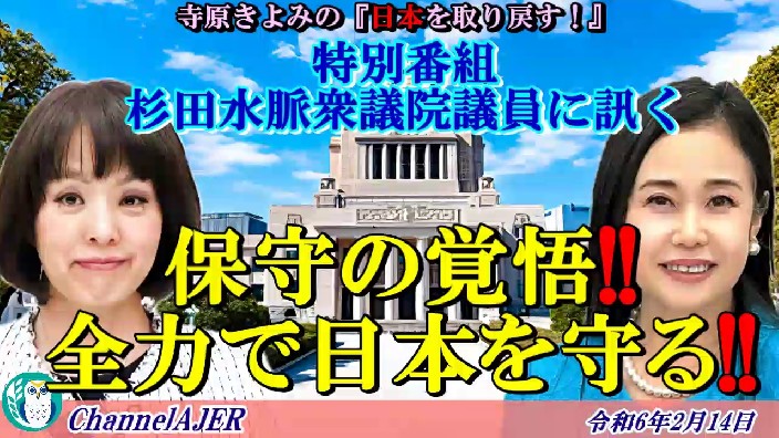 寺原きよみの『日本を取り戻す!』【特別番組】「杉田水脈衆議院議員に訊くー保守の覚悟!!全力で日本を守る!!」寺原きよみ AJER2024.2.14(6)