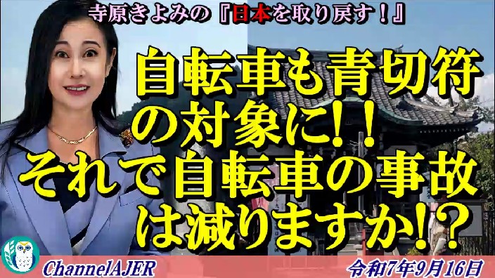 寺原きよみの『日本を取り戻す!』第115回「自転車も青切符の対象に!!それで自転車の事故は減りますか!?(後半)」寺原きよみ AJER2025.9.16(2)