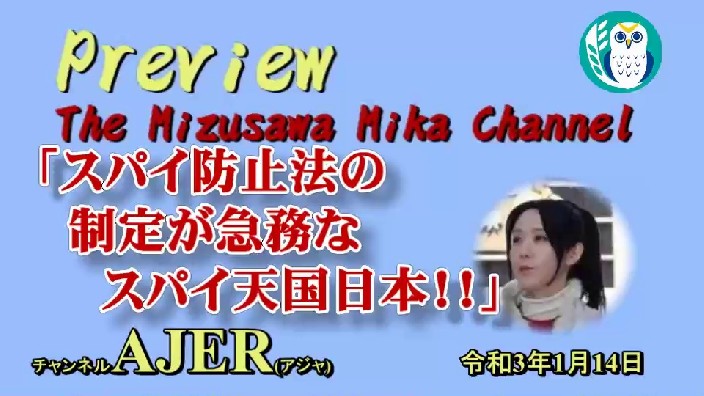 「Preview The MizusawaMika Channel スパイ防止法の制定が急務なスパイ天国日本!!」AJER2021.1.14(3)