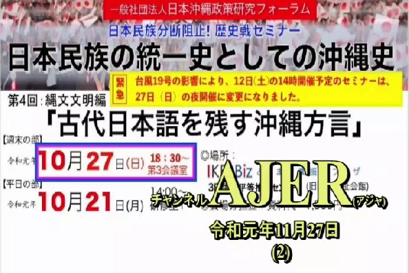 『日本民族の統一史としての沖縄史ー第四回縄文文明編 『古代日本語を残す沖縄方言』本編-その3』(後半)仲村覚 AJER2019.11.27(2)