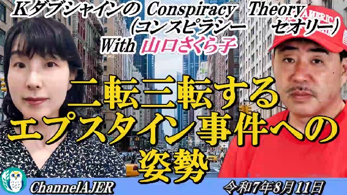 KダブシャインのConspiracyTheoryコンスピラシーセオリー第189回「二転三転するエプスタイン事件への姿勢」Kダブシャイン&山口さくら子AJER2025.8.11(1)