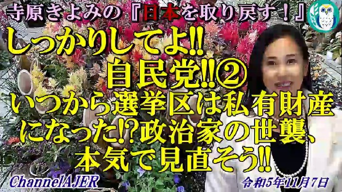 寺原きよみの『日本を取り戻す!』第18回「しっかりしてよ!!自民党!!②ーいつから選挙区は私有財産になった!?政治家の世襲、本気で見直そう!!(後半)」寺原きよみ AJER2022.11.7(2)
