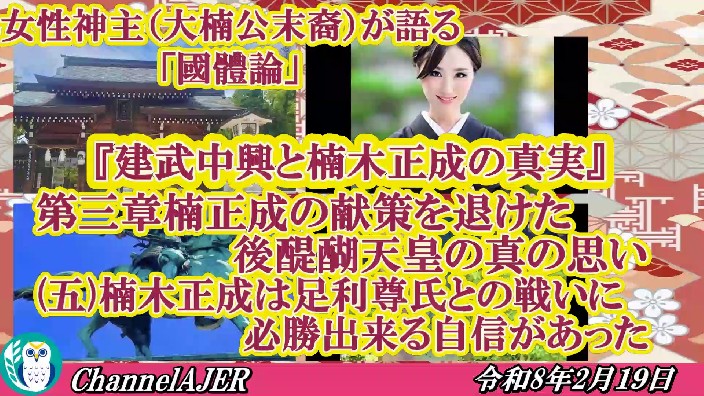 女性神主が語る國體論「第三章楠木正成の献策を退けた後醍醐天皇(五)楠木正成は足利尊氏との戦いに必勝できる自信があった」山下弘枝 AJER2026.2.19(2)