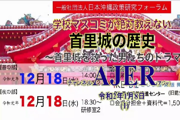 『学校マスコミが絶対教えない「首里城の歴史」~首里城を救った男たちのドラマ~」』(その1ー前半)仲村覚 AJER2020.1.8(1)