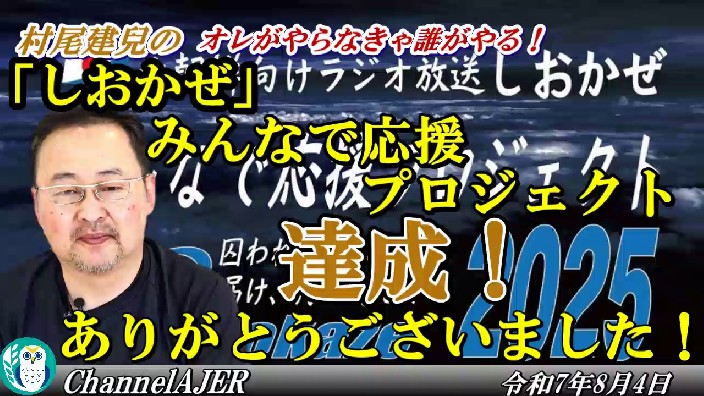 オレがやらなきゃ誰がやる!第25回「『しおかぜ』みんなで応援プロジェクト達成!ありがとうございました!」村尾建兒 AJER2025.8.4(5)
