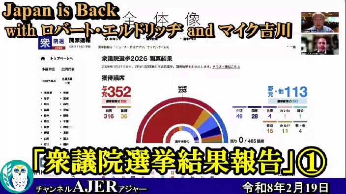 Japan is Back with ロバート・エルドリッヂ and マイク吉川「衆議院選挙結果分析(①-前半)」前半 AJER2026.2.19(3)