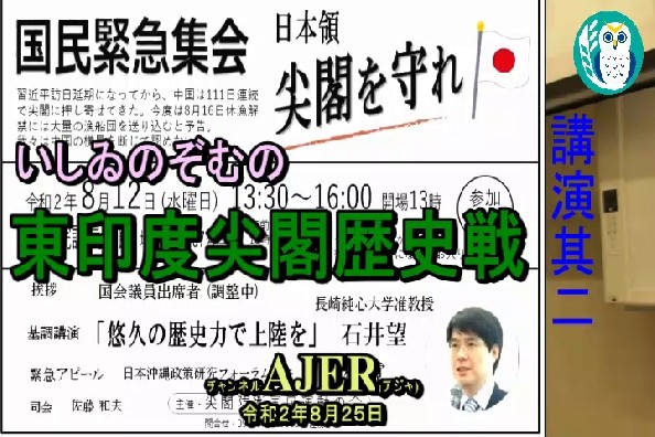 東印度尖閣歴史戰「「國泰緊急集會・日本領尖閣を守れ」基調講演「悠久の歴史力で上陸を(2)」(前半) いしゐのぞむ AJER2020.8.25(3)